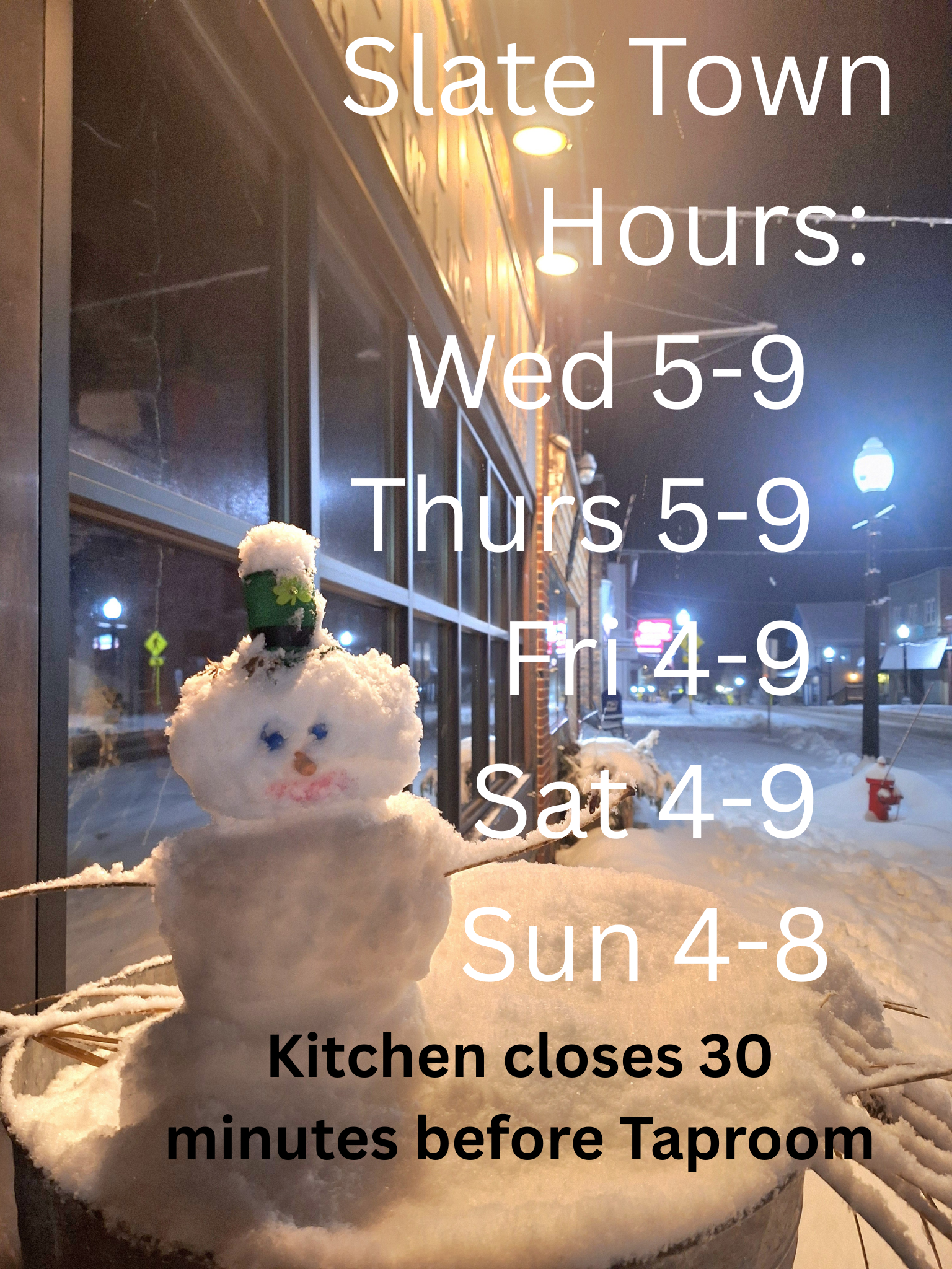 Kitchen closes 30 minutes before Taproom