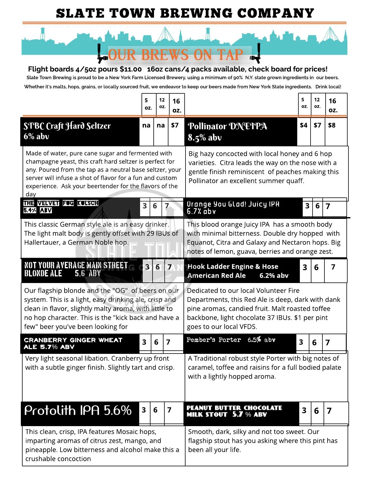 Β© Copyright 2022 Slate Town Brewing Company, LLC | All Rights Reserved. Website by Upstated Design