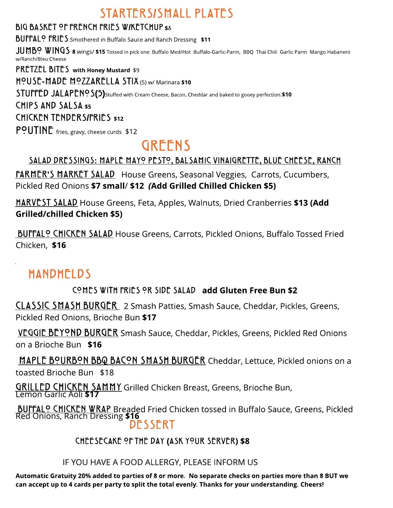 call us at (518) 345-5357 to order take out or make a reservation